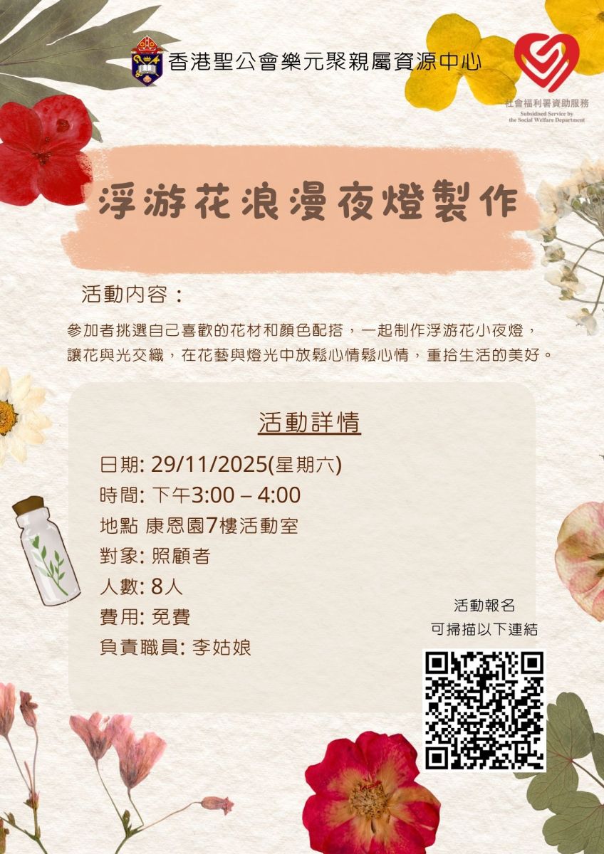 參加者挑選自己喜歡的花材和顏色配搭,一起制作浮游花小夜燈,