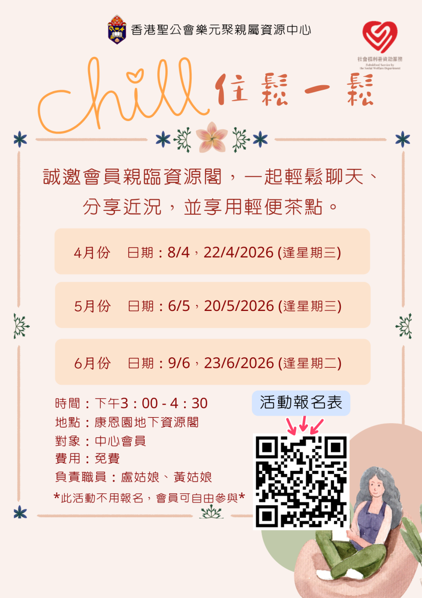 活动内容:诚邀会员亲临资源阁,一起轻松聊天、分享近况,并享用轻便茶点。