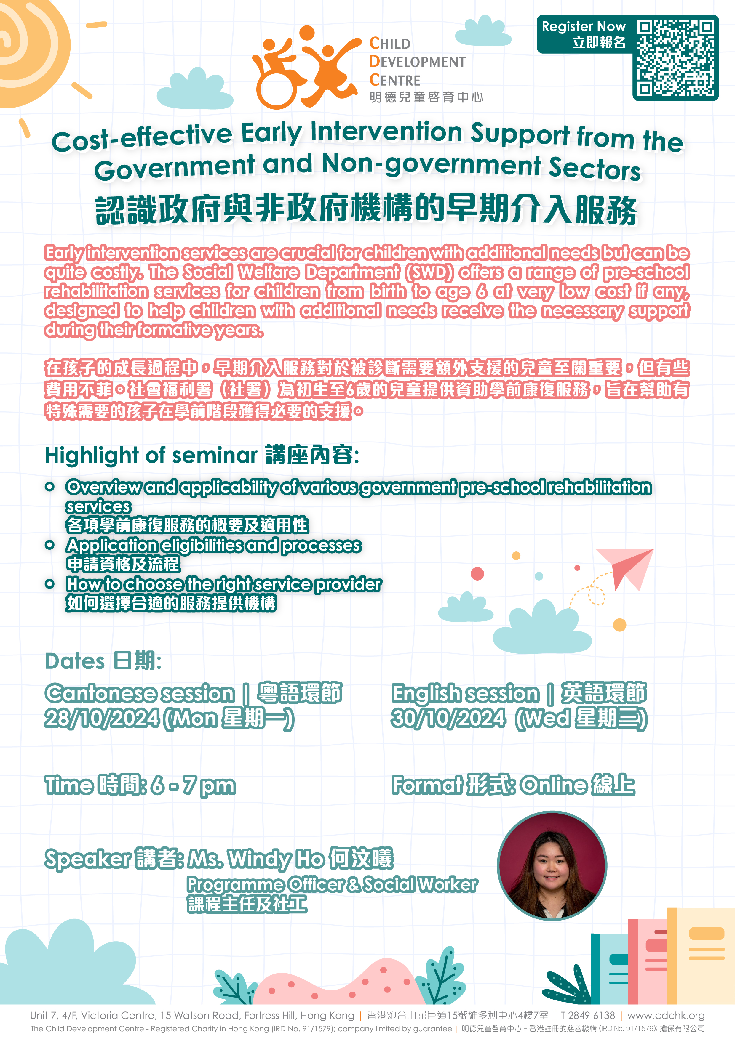 立即参加【认识政府与非政府机构的早期介入服务】讲座,了解更多: